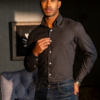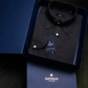 • Our shirt is a masterpiece of design and innovation, featuring a soft super-rolled button-down collar for a sophisticated touch. The contemporary silhouette elevates the wearer to sartorial splendour, complemented by specially designed boat-shaped cuffs and a matching cut at the bottom. Meticulously crafted with years of research, this shirt is a symbol of modern elegance, blending style and grace seamlessly.